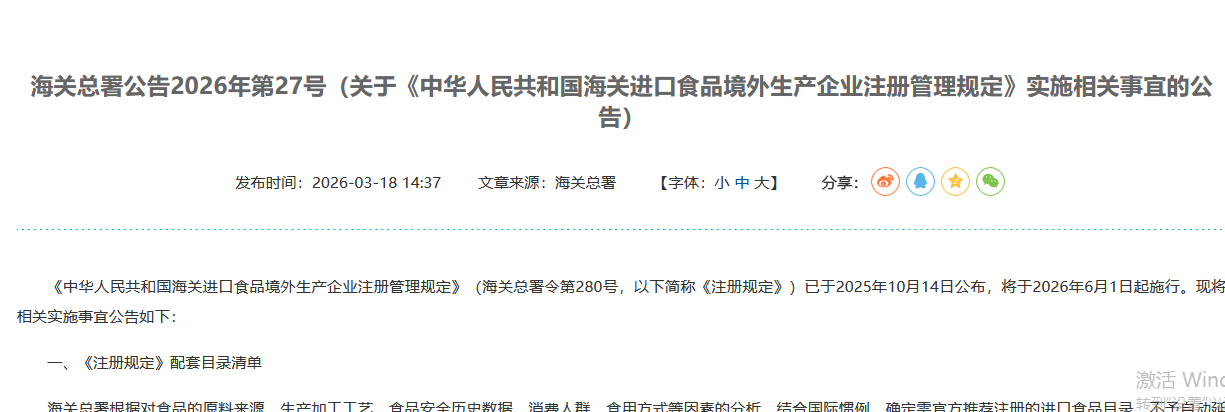 内容转自海关总署