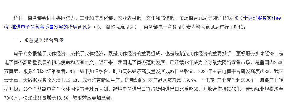 解读《关于更好服务实体经济 推进电子商务高质量发展的指导意见